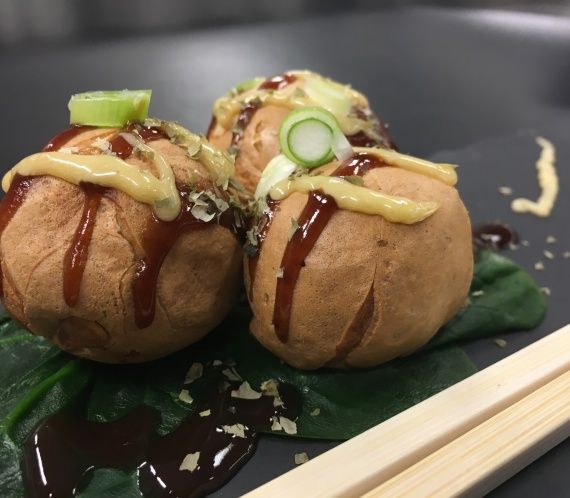 Grappasabayon en flensjes met een hazelnootvulling en druiven