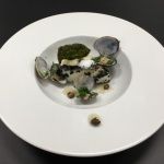 ‘Baccalà’ van gezouten kabeljauw, gefrituurde kappertjes, bereidingen van zeewier, kabeljauw met gedroogd zeewier, kokkels, zeekraal & schorrekruid, visschuim